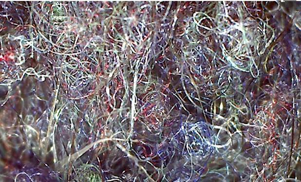 洗衣机排出废水中的塑料纤维 (图片据英国卫报)