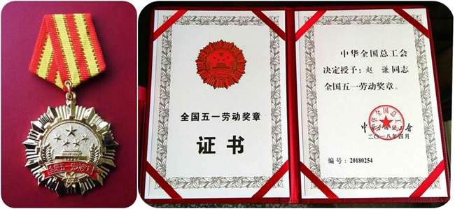 在2018“五一”国际劳动节来临之际,江苏省硅酸盐学会副理事长、中材科技股份有限公司副总裁、南京玻璃纤维研究设计院有限公司董事长、党委副书记赵谦同志被中华全国总工会授予“全国五一劳动奖章”。