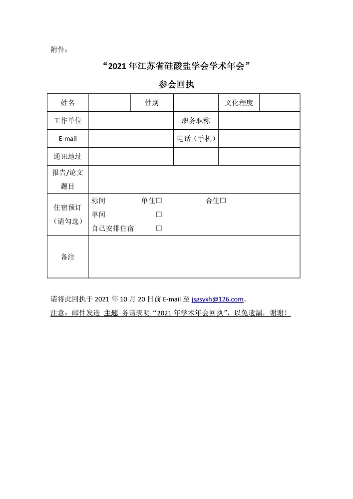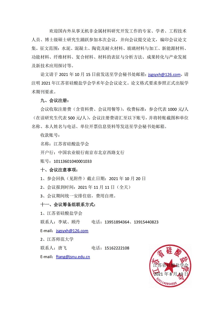 2021年江苏省硅酸盐学会学术年会第一轮会议通知