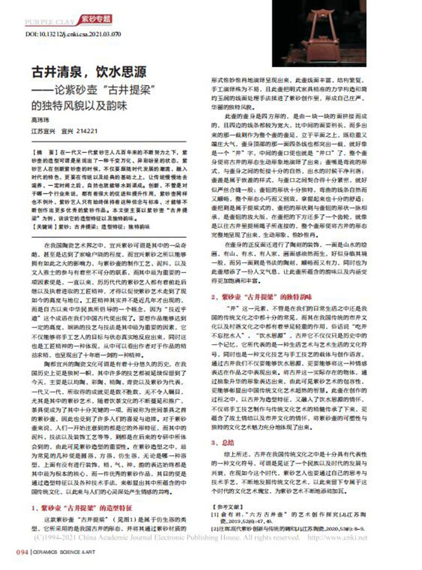 古井清泉,饮水思源——论紫砂壶“古井提梁”的独特风貌以及韵味
