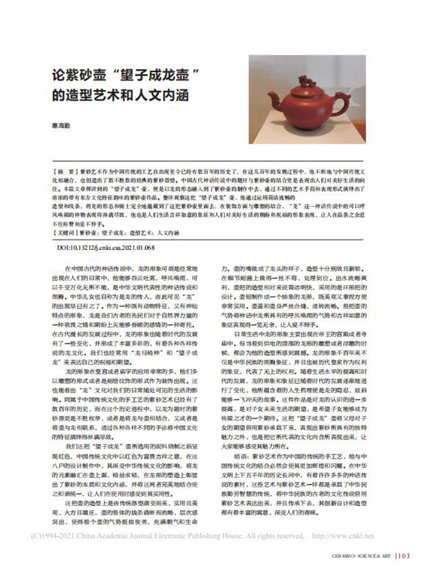 论紫砂壶“望子成龙壶”的造型艺术和人文内涵