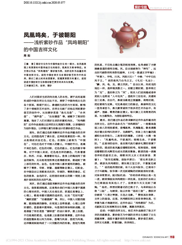 凤凰鸣矣,于彼朝阳——浅析紫砂作品“凤鸣朝阳”的中国吉祥文化