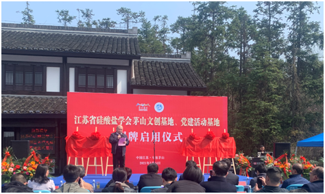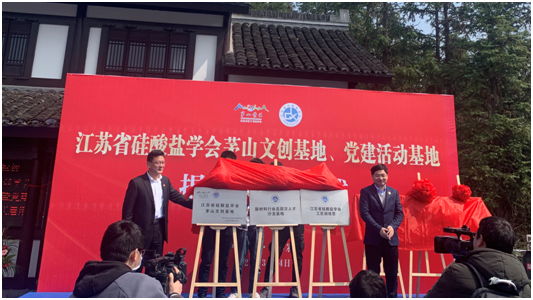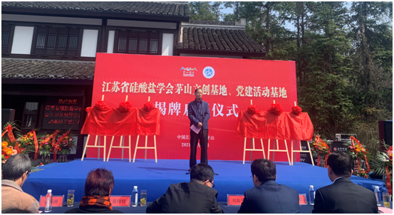 由江苏省硅酸盐学会理事长刘加平、茅山管委会主任桑学军为江苏省硅酸盐学会茅山文创基地、新材料行业高层次人才沙龙基地和江苏省硅酸盐学会工匠训练营揭牌;江苏省硅酸盐学会理事会党建工作领导小组组长刘加平、学会秘书处党支部书记尹嘉琦为江苏省硅酸盐学会党建活动基地、科技工作者之家和负责基地运营的苏材新文化传媒公司揭牌,标志着江苏省硅酸盐学会的系列活动正式启用。