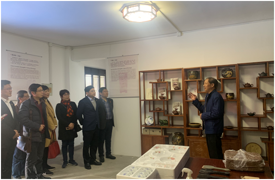 揭牌仪式结束后,与会嘉宾在方卫明大师和陈富强大师的介绍下参观了精美的紫砂制品。高级工艺美术师吴赛春老师现场演示了紫砂壶的制壶技艺。