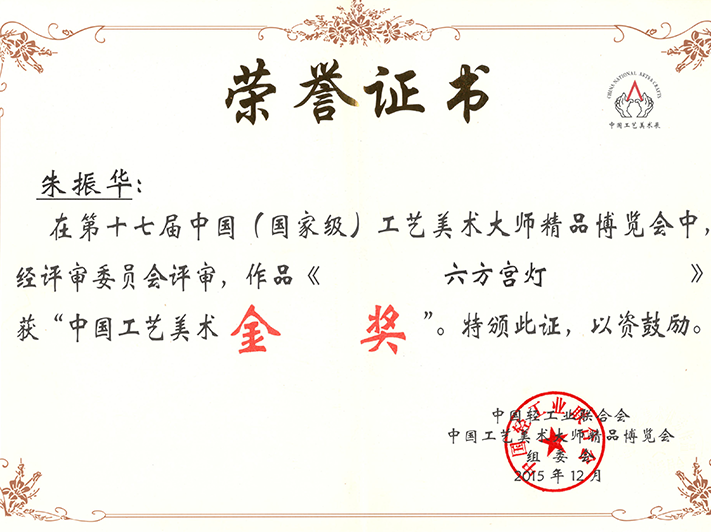 金奖证书