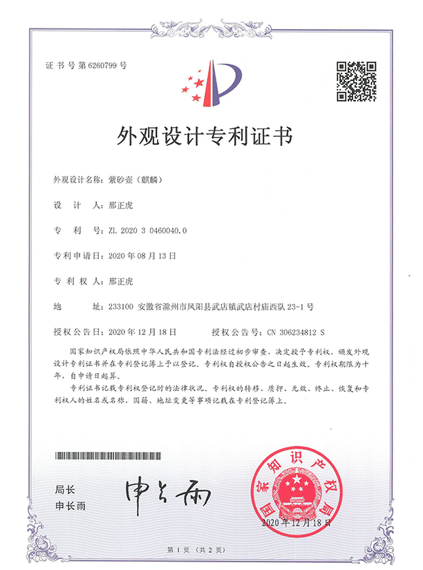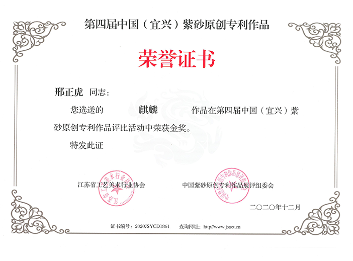 第四届中国(宜兴)紫砂原创专利作品评比活动中荣获金奖