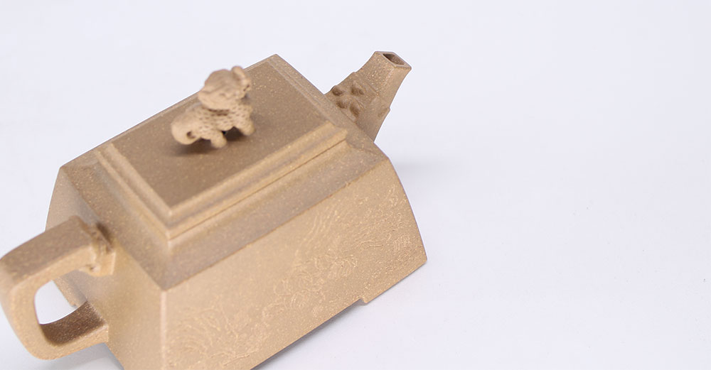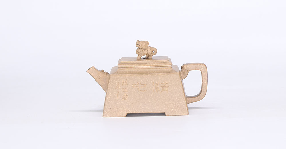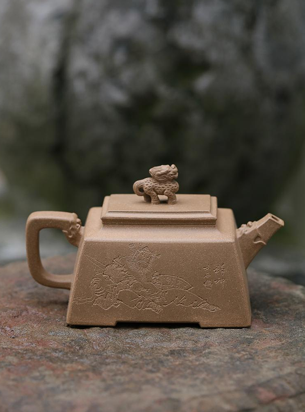 此作以五大神兽之麒麟为题材创作。四方造型壶身,刚毅正直,挺括有神,流把塑以抽象瑞兽之首,融于四方线条之中,端庄大气,神丰韵足。整器注重细节,细腻精致的做工,彰显中国传统文化之美,古雅有度,耐人寻味。以麒麟入壶,寓意着四方平安,吉祥长寿,同时表达了一种对于贤才与智慧的追求。