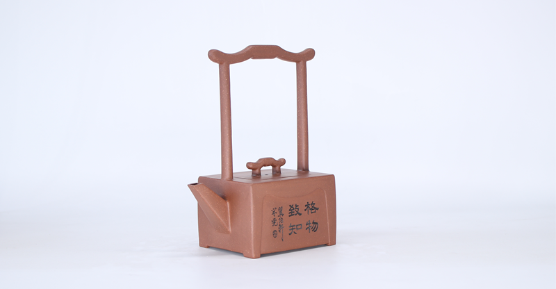 以明式家具经典的南官帽椅为主题,采用优质的紫砂清水泥制作,以现代电窑烧成。充分展现明式家具端正壮穆、简洁明快、圆润深沉、古雅精丽的特质;一面刻“致良知”篆书;另一面刻花鸟,表达致良知的入世理念。